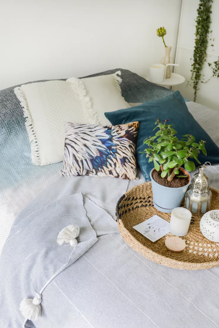 - Stap 7: Maak je slaapkamer af met een vloerkleed, kunst en groen